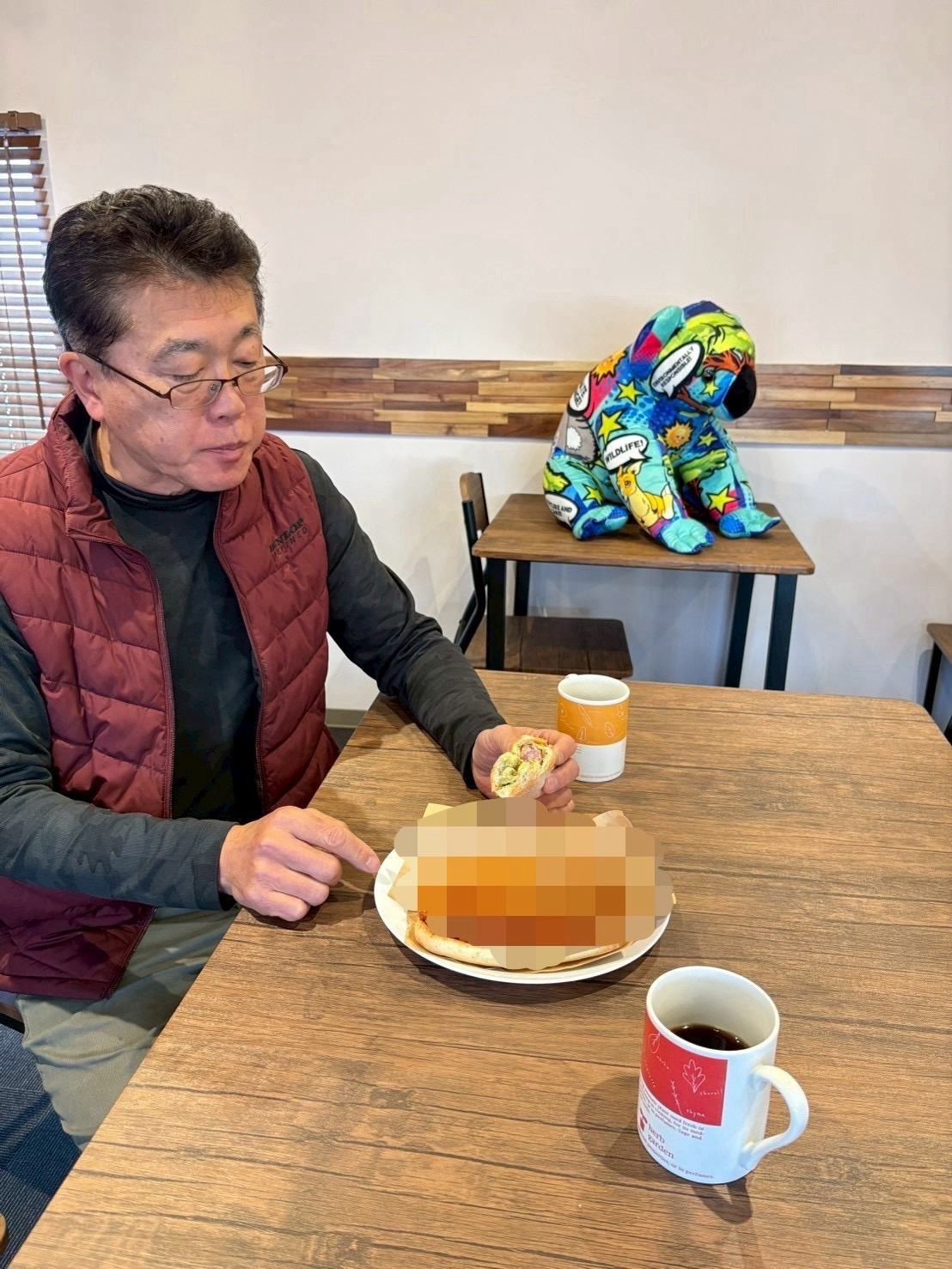 プレオープンパーティーでお出しするホットドッグを社長が試食中🌭