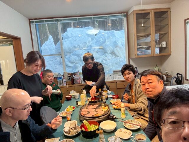 そんな中、室内ではホットプレートでジュージューと、あたたかいご飯です。